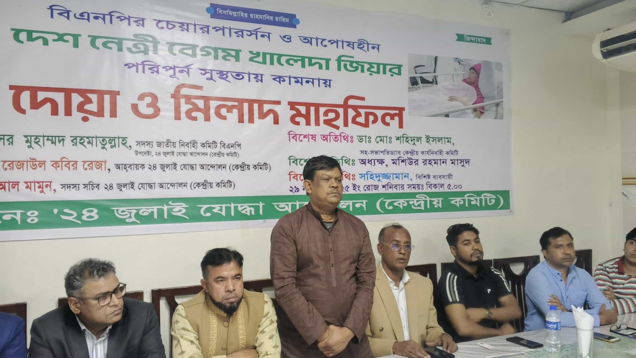 ‘আমরা বিএনপি পরিবার’-এর উদ্যোগে বেগম খালেদা জিয়ার সুস্থতা কামনায় দোয়া মাহফিল