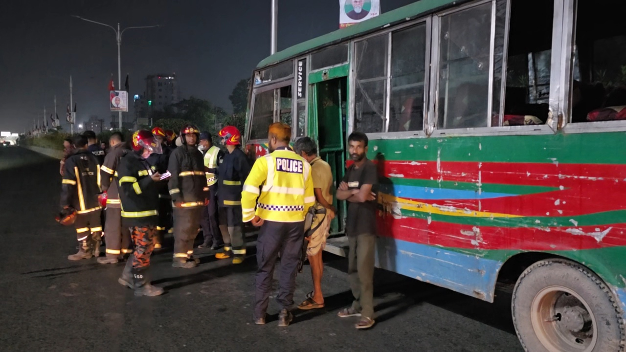নারায়ণগঞ্জে দাঁড়িয়ে থাকা বাসে আগুন