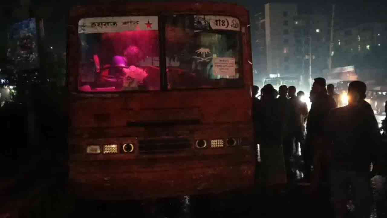 সাভারে মহাসড়কের পাশে দাঁড়িয়ে থাকা বাসে আগুন