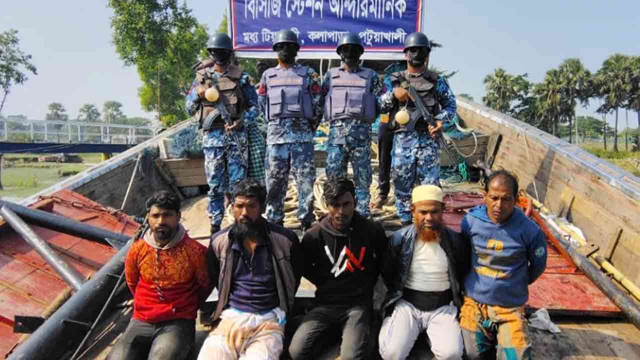 কলাপাড়ায় কোস্টগার্ডের অভিযানে অবৈধ ট্রলিং বোটসহ ৫ জেলে আটক