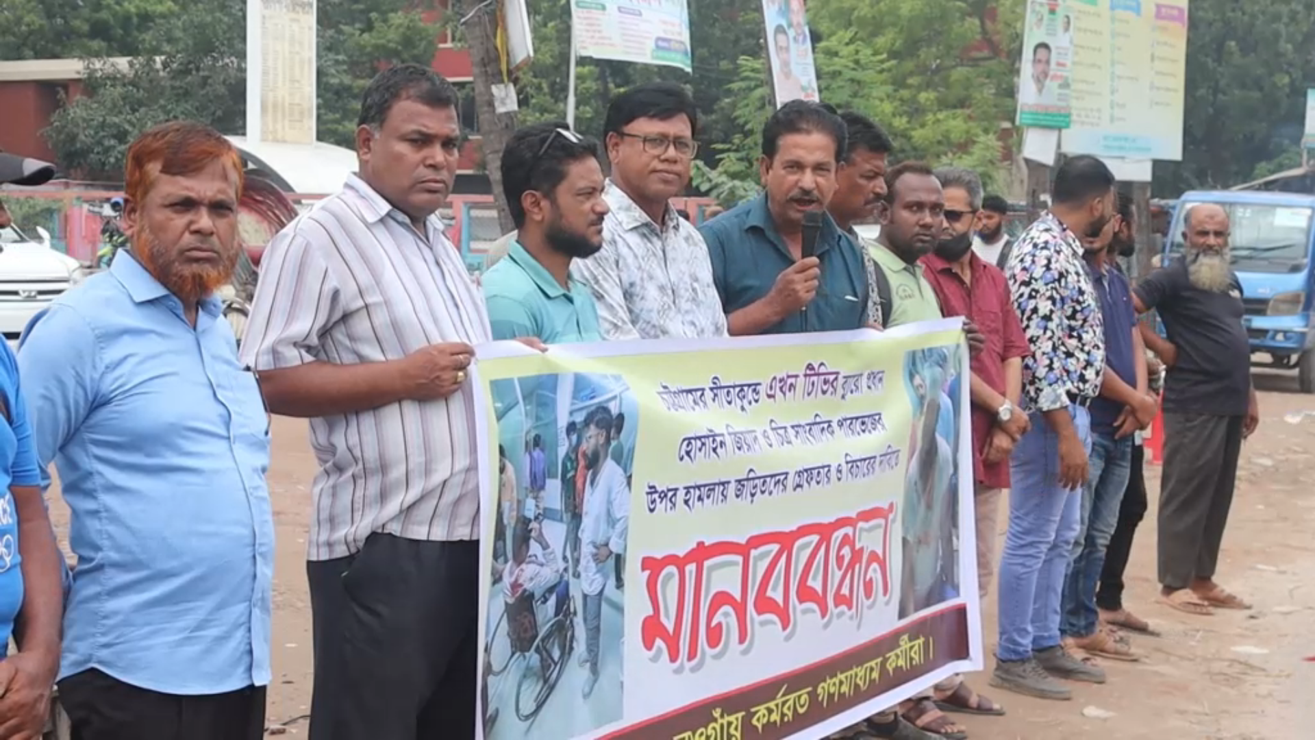চট্টগ্রামের এখন টেলিভিশনের সাংবাদিকের ওপর সন্ত্রাসির প্রতিবাদে নওগাঁ মানববন্ধন