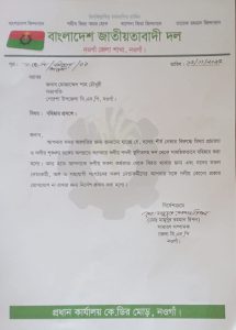 বিজ্ঞপ্তিতে সভাপতি পদ স্থগিত, দল থেকে বহিষ্কার ও আজ হতে দলের সকল কর্মকান্ড থেকে বিরত থাকার জন্য এবং দলের সকল নেতাকর্মী, অঙ্গ ও সহযোগী সংগঠনের সঙ্গে দলীয় কোন প্রকার যোগাযোগ না করার জন্যও তাকে নির্দেশনা দেওয়া হয়েছে।