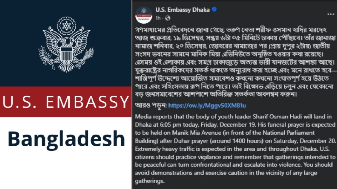 বাংলাদেশে থাকা মার্কিন নাগরিকদের সতর্ক করল যুক্তরাষ্ট্র দূতাবাস