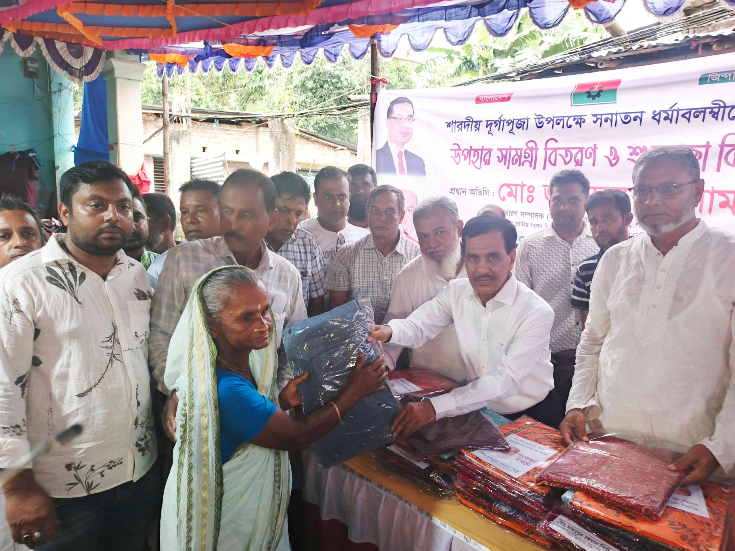 শারদীয় দুর্গাপূজা উপলক্ষে দেশনেত্রী বেগম খালেদা জিয়া ও তারুণ্যের প্রতীক তারেক রহমানের নিদেশে নওগাঁ পৌর এলাকার খিদিরপুর শিমুলিয়া উত্তরপাড়া পূজা