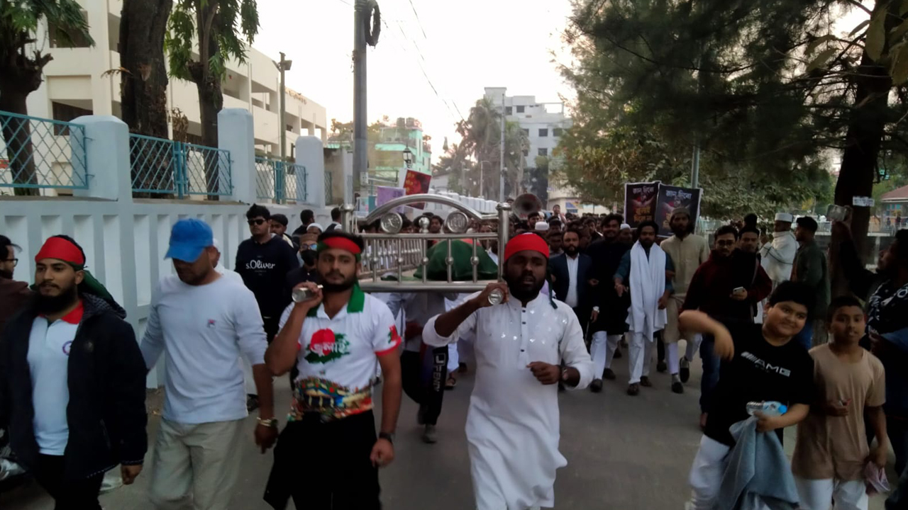 ওসমান হাদির প্রতীকী লাশ নিয়ে বিক্ষোভ মিছিল
