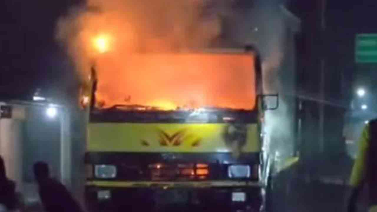 ময়মনসিংহে কাভার্ড ভ্যানে দুর্বৃত্তদের আগুন
